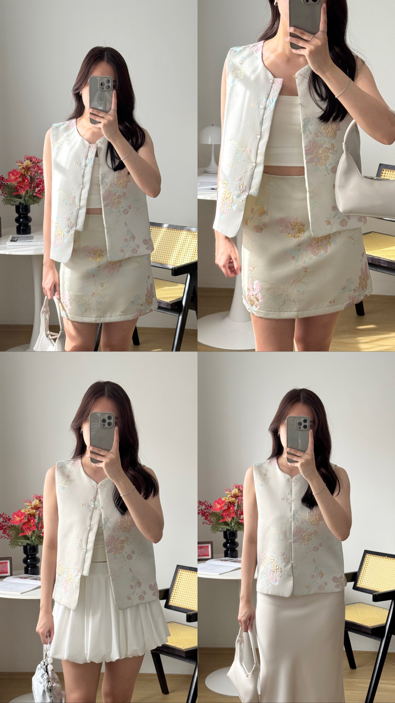 马甲搭配A字短裙,融合现代和中式美感