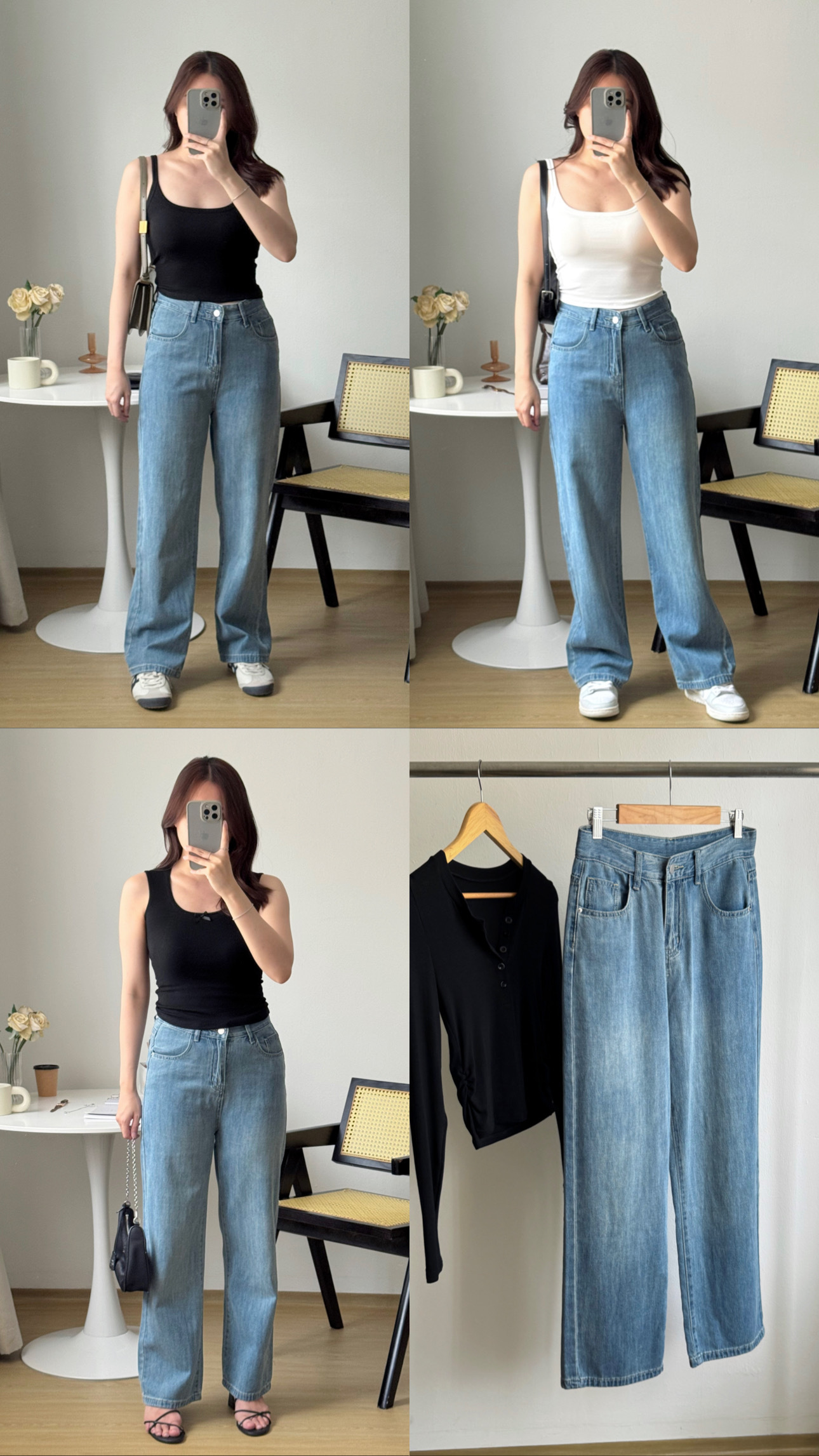 整体是直筒的版型 更加修饰腿型遮肉肉