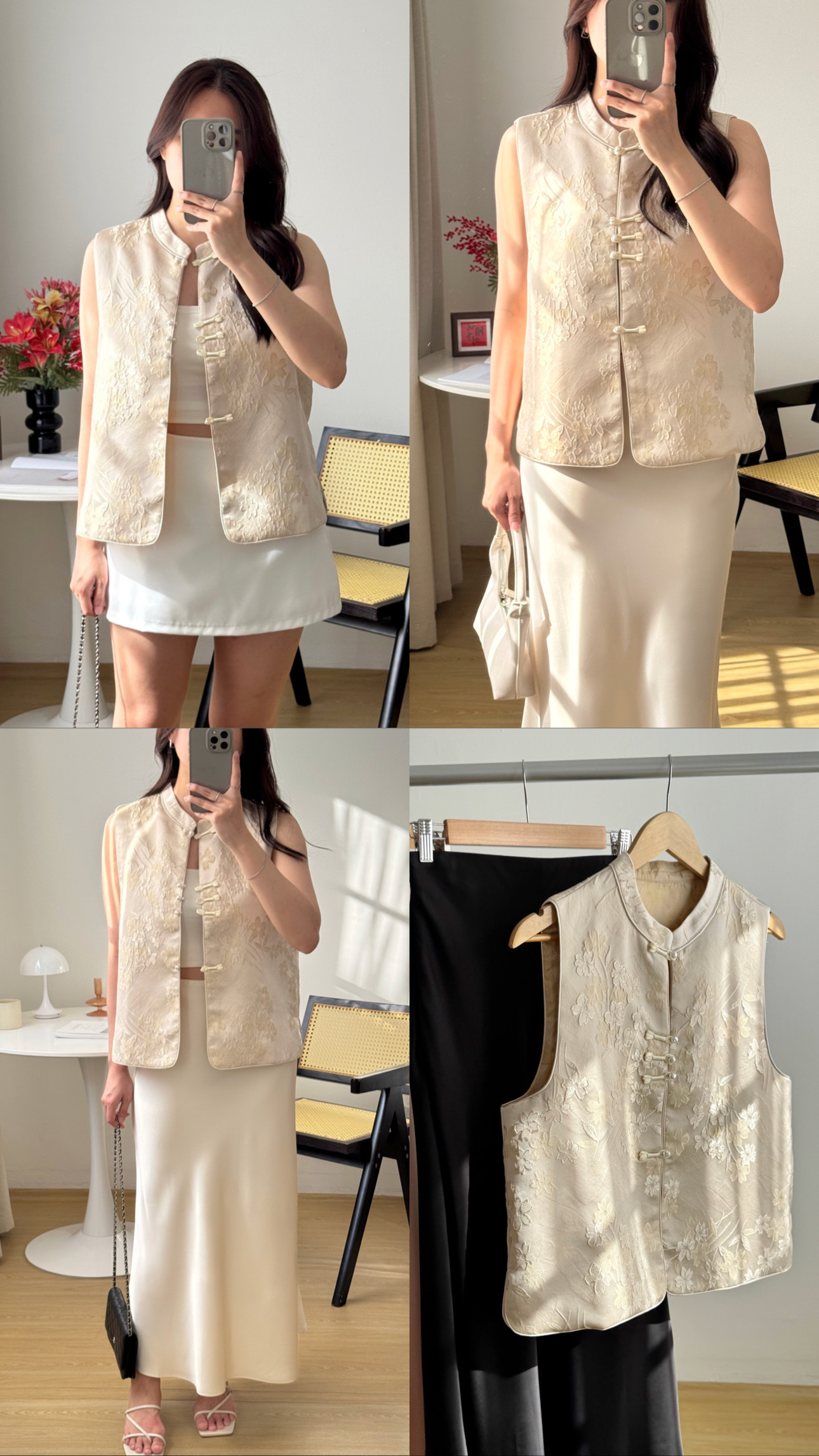 Oriental Jacquard Embroidered Vest - Golden Beige (PREMIUM)