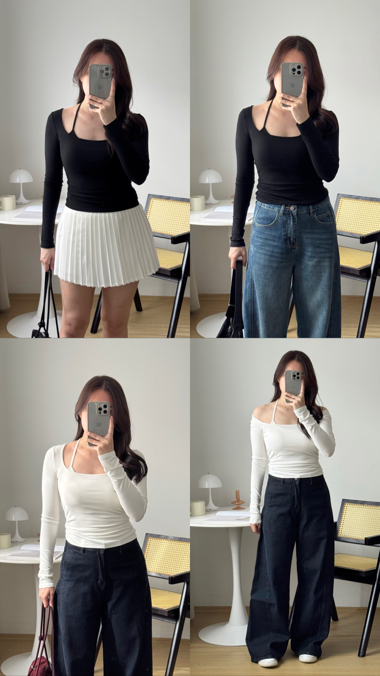 LULU风正肩修身假2件长袖 谁穿谁瘦!