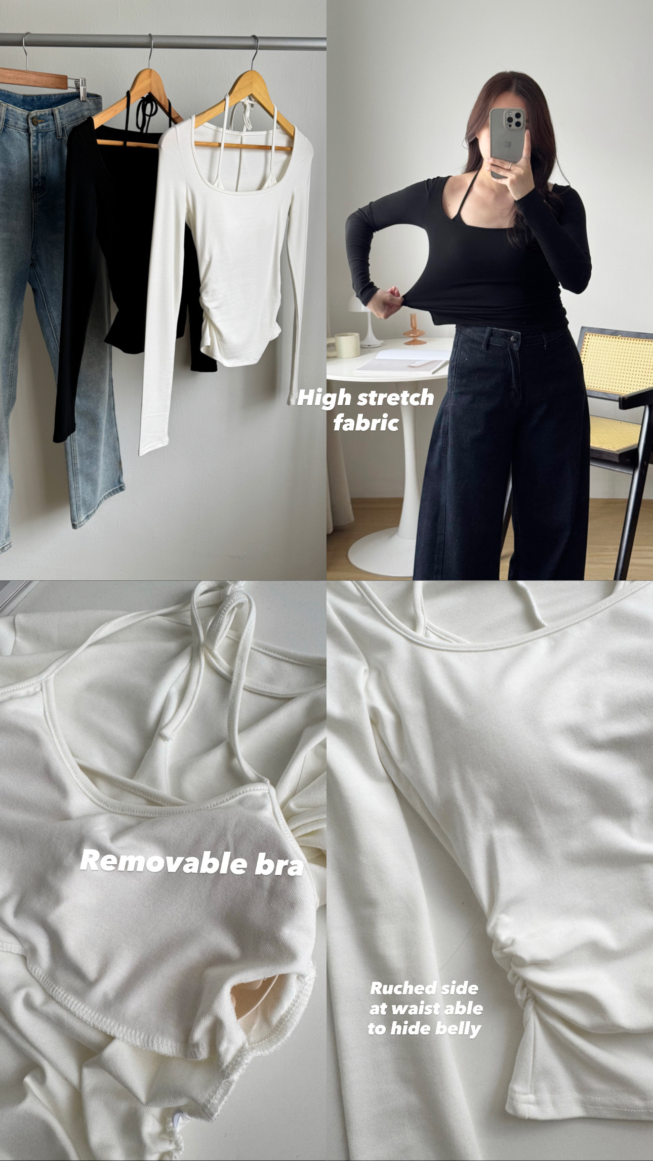 大方领+细挂脖肩带设计很显瘦 突出肩膀和锁骨线