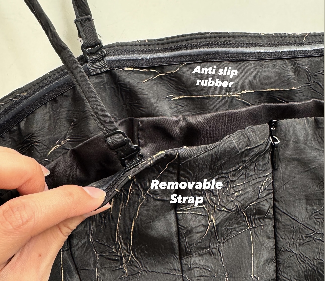 - Removable and adjustable strap