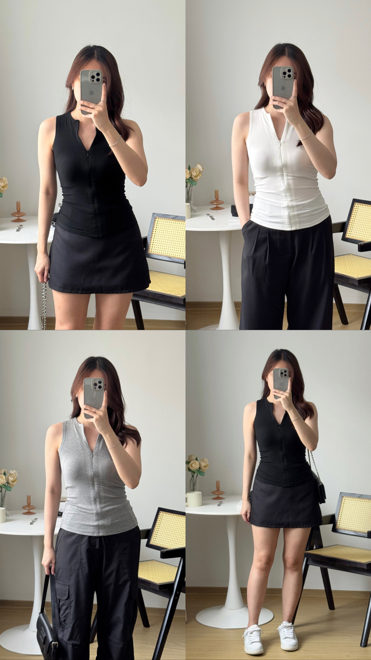 - Racerback tank with front zip