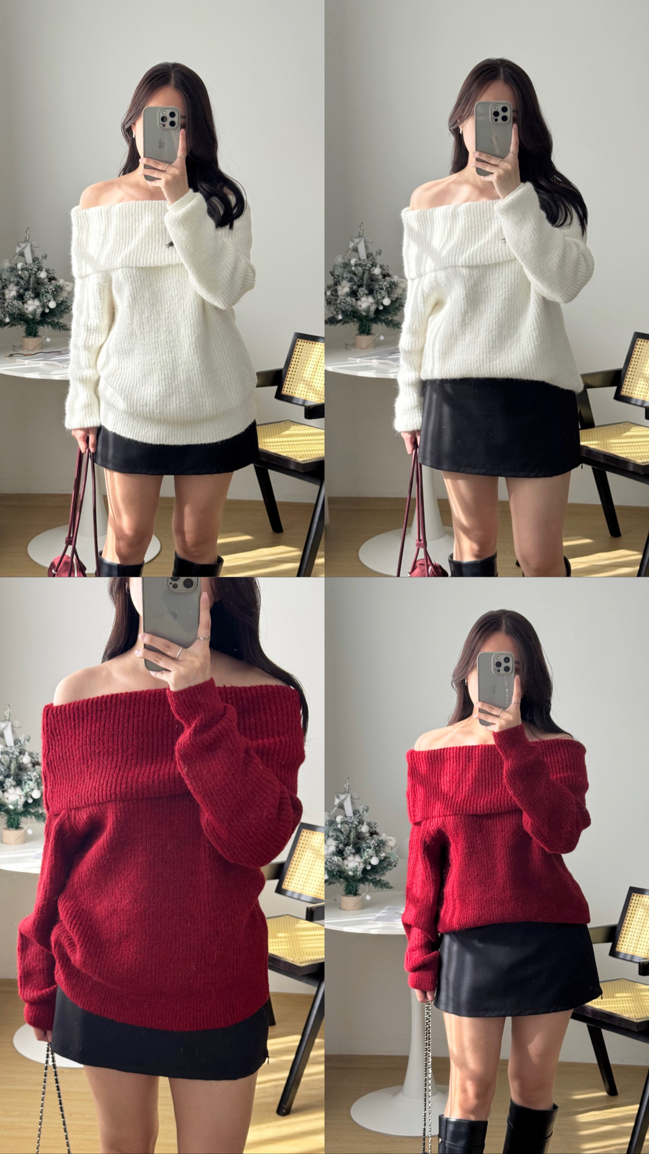一字肩设计露出纤细的肩膀和锁骨 遮住手臂肉肉