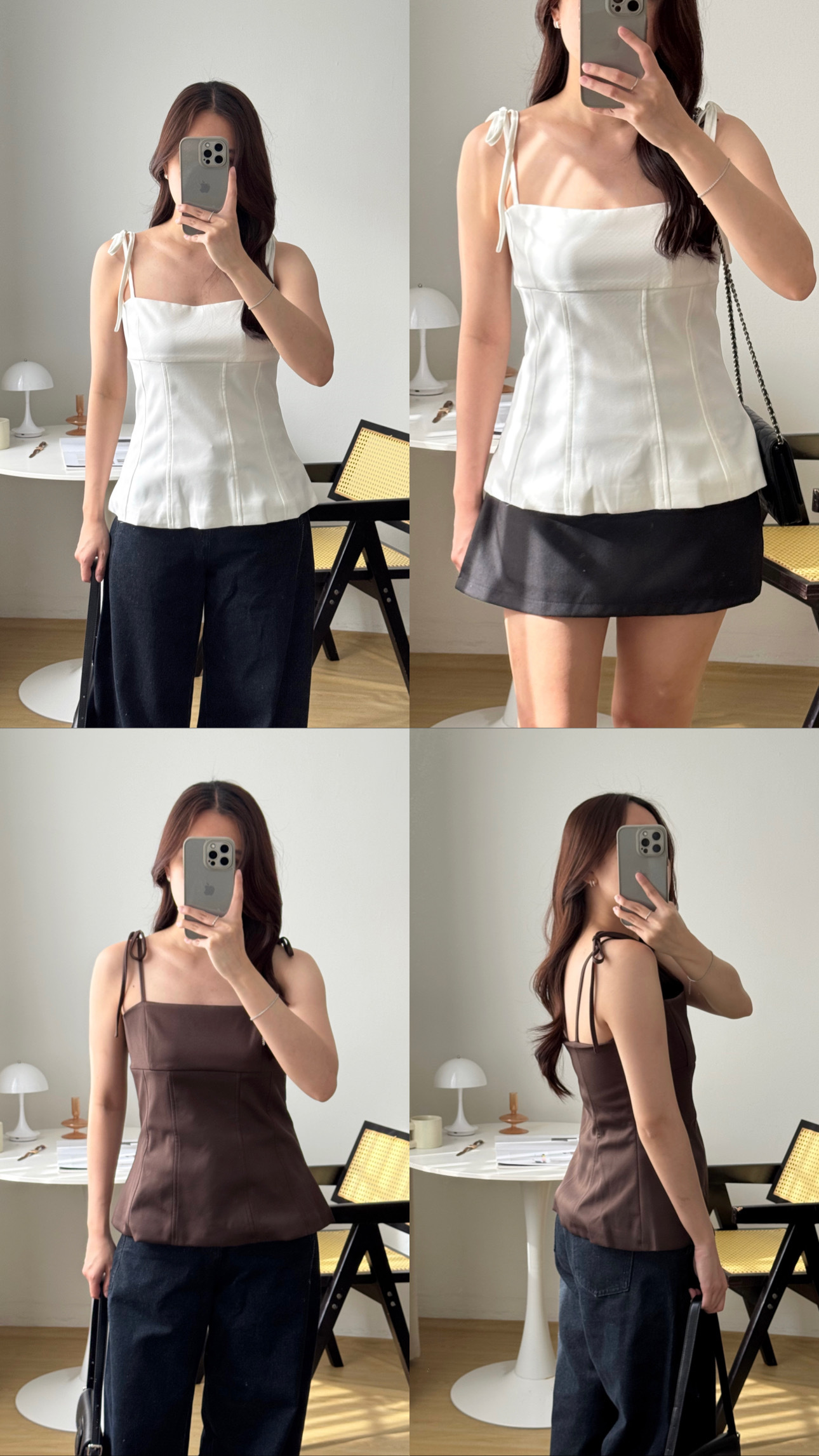 Ribbon Fitted Top (Brown/White/Red