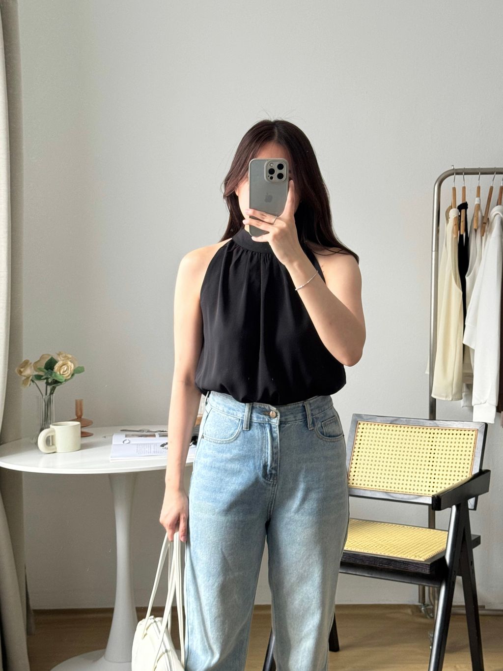 清冷姐感挂脖上衣