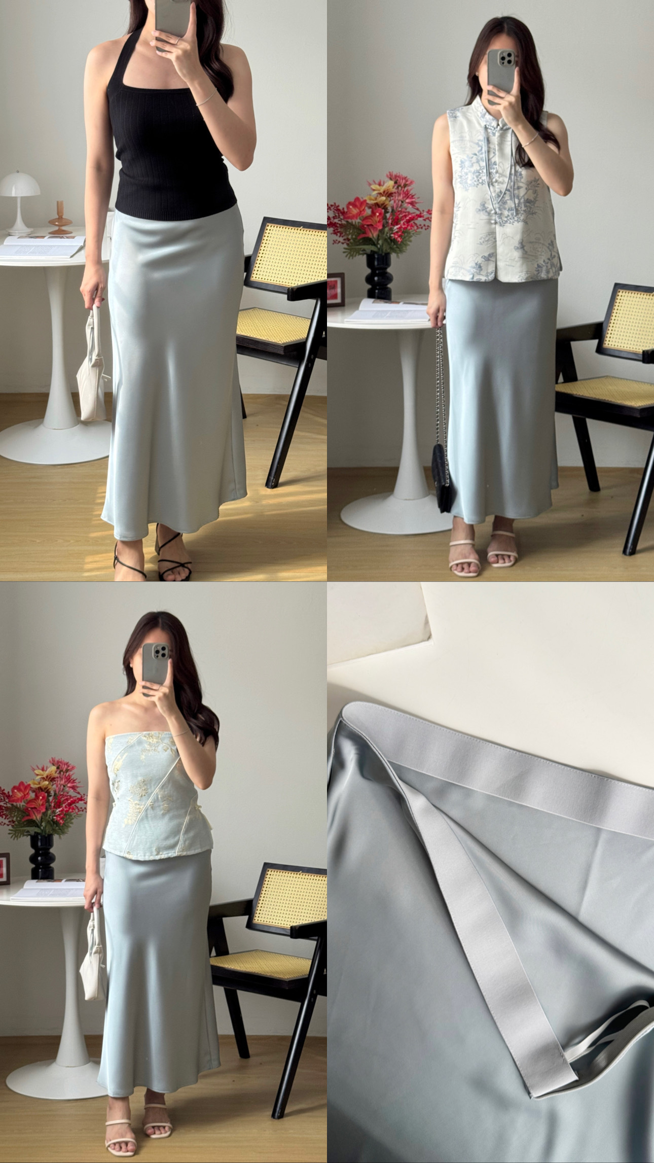 缎面鱼尾长裙 喜欢法式休闲风的必入