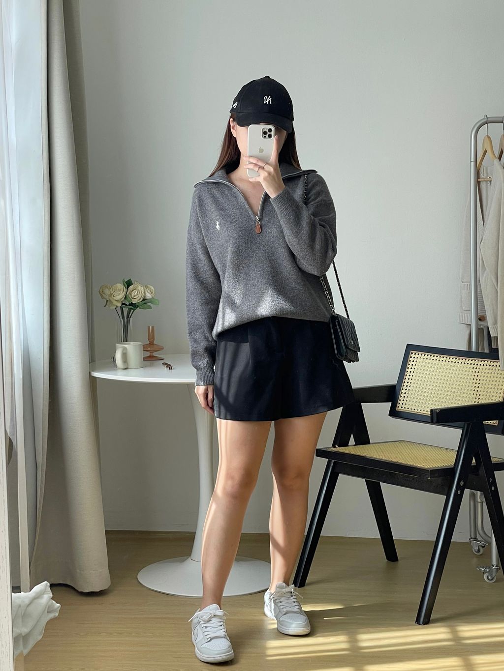 - Half Zip Knit Sweater with a wide spread collar, dropped shoulders & loose sleeves