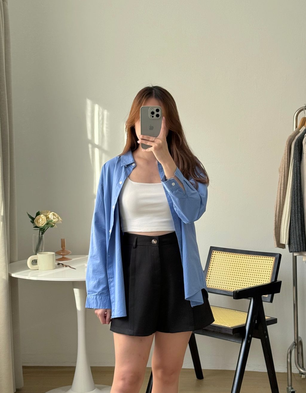 宽松廓形的衬衫能很好地修饰身材